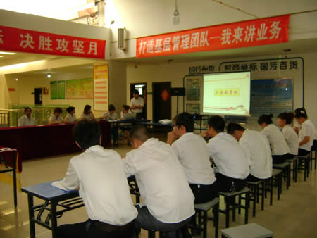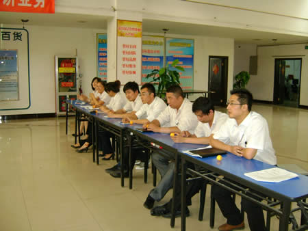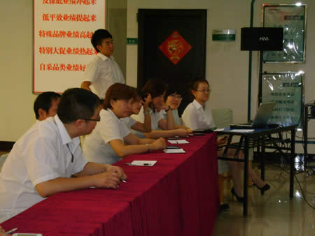 經(jīng)過(guò)兩番試卷考核之后,于2011年6月22日下午15:00時(shí)進(jìn)行了第一場(chǎng)實(shí)操PK賽——我來(lái)講業(yè)務(wù)部分的競(jìng)技。此次比賽均采用現(xiàn)場(chǎng)電腦隨機(jī)抽題,比賽人員現(xiàn)場(chǎng)準(zhǔn)備現(xiàn)場(chǎng)作答。業(yè)務(wù)展示題目涉及到賣(mài)場(chǎng)基層管理人員最核心、最基本的崗位知識(shí)、技能和職業(yè)素養(yǎng),如促銷管理、員工管理、VIP顧客管理、目標(biāo)責(zé)任管理等。