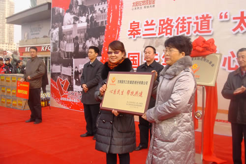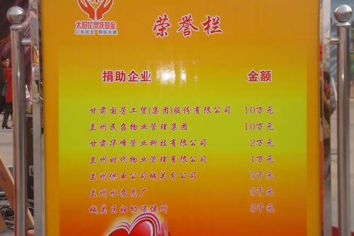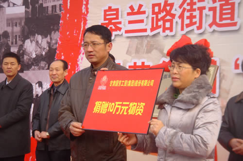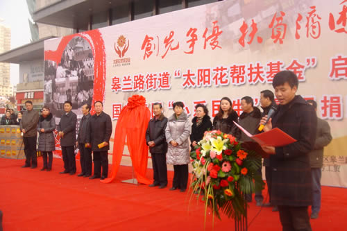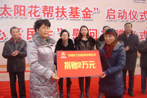 2012元月6日下午3時(shí),甘肅國(guó)芳集團(tuán)聯(lián)合城關(guān)區(qū)皋蘭路街道黨工委、辦事處舉行了“創(chuàng)先爭(zhēng)優(yōu)、扶貧濟(jì)困”太陽花幫扶基金啟動(dòng)儀式,充分體現(xiàn)民生為本的服務(wù)宗旨,著力搭建社會(huì)幫扶救助平臺(tái),切實(shí)解決弱勢(shì)群體實(shí)際困難,促進(jìn)和諧街道建設(shè)。