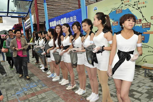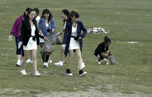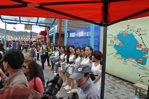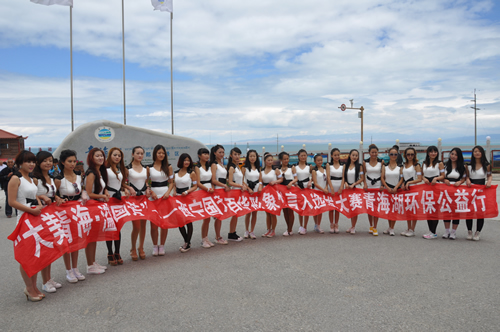 中午,一行到達(dá)青海湖畔。天高地闊的美景與靚麗的美女即刻構(gòu)筑成為一道精彩的風(fēng)景,隨行攝影師、攝像師即刻拿起機(jī)器留下許多難得的好畫面。接下來的環(huán)保實(shí)踐與環(huán)保意識推廣為眾多選手留下了深刻的印象,許多選手紛紛表示希望通過自己的行動提高社會環(huán)保意識,讓跟多人參與到保護(hù)青海湖環(huán)境中來。