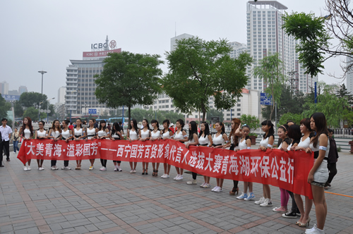 清晨伊始,30名美麗的佳麗們身著統(tǒng)一服裝,在中心廣場進(jìn)行青海湖環(huán)保公益行啟動活動。靚麗的身影與極具號召力的主題吸引了廣大市民的圍觀和拍照。
