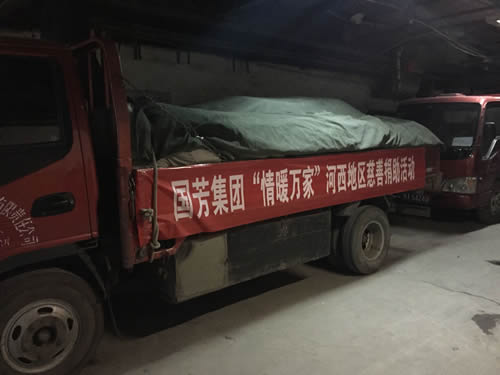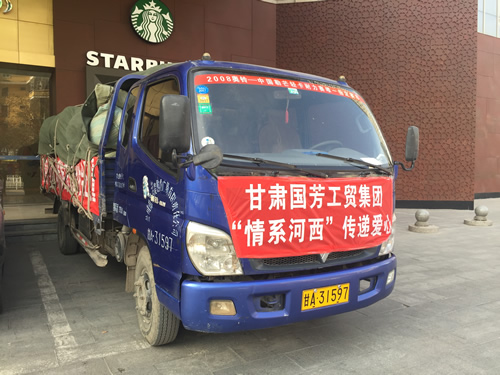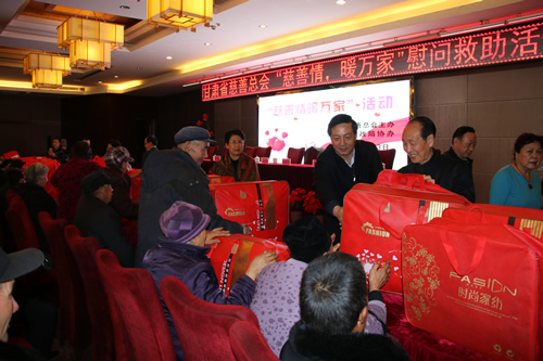 2016年12月12日,甘肅省慈善總會、武威市民政局?jǐn)y甘肅國芳工貿(mào)(集團)股份有限公司共同舉行“情暖萬家”送溫暖活動,將100萬元資金以及價值100萬元的過冬棉服帶給天?h岔口驛敬老院的老人們。當(dāng)日下午,甘肅省慈善總會與甘肅國芳工貿(mào)(集團)股份有限公司的各位愛心人士又馬不停蹄的趕赴張掖為當(dāng)?shù)氐墓鹿牙先藥チ?60萬元資金以及價值250余萬元的過冬衣物及被褥。此次活動傳導(dǎo)社會幫扶、精準(zhǔn)扶貧精神的同時也默默為社會傳導(dǎo)著一份正能量。